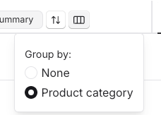 Example: Group by category in Orders view, switch to Pivot view, and the grouping remains active
