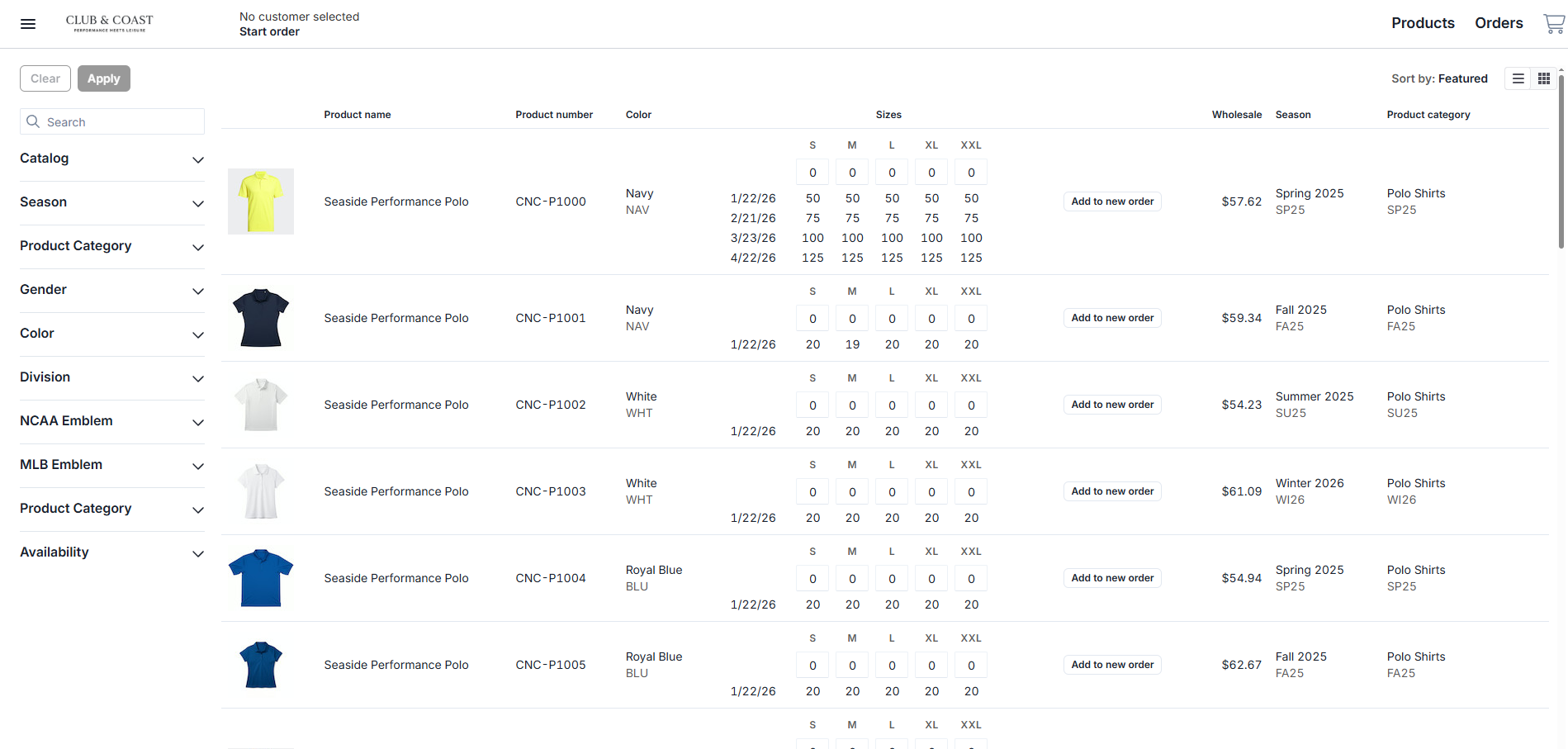 Click Add to new order next to any product to start immediately
