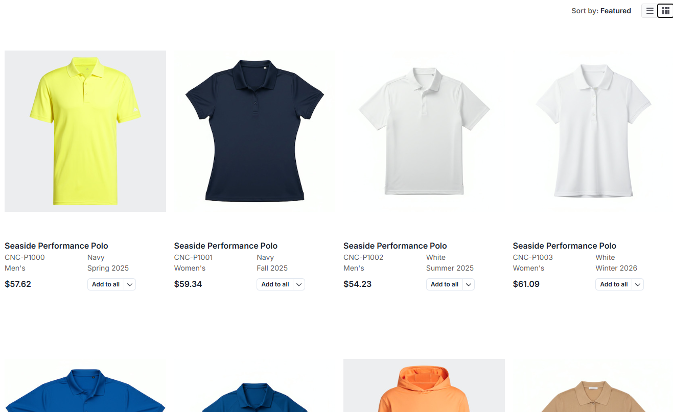 Grid view: Visual layout with product images