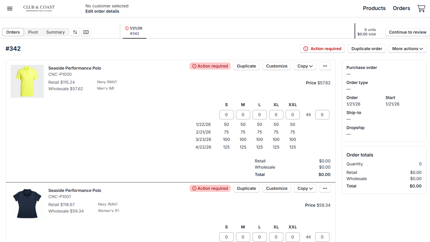 You can start orders from multiple entry points including assortments, catalogs, or the orders page. This guide covers the most common scenario: starting from the products page. The ordering process allows you to manage multiple orders simultaneously, add products efficiently, and utilize different cart views for optimal order management. Wherever you start an order, you'll land into the products page to add products and continue with the order flow.