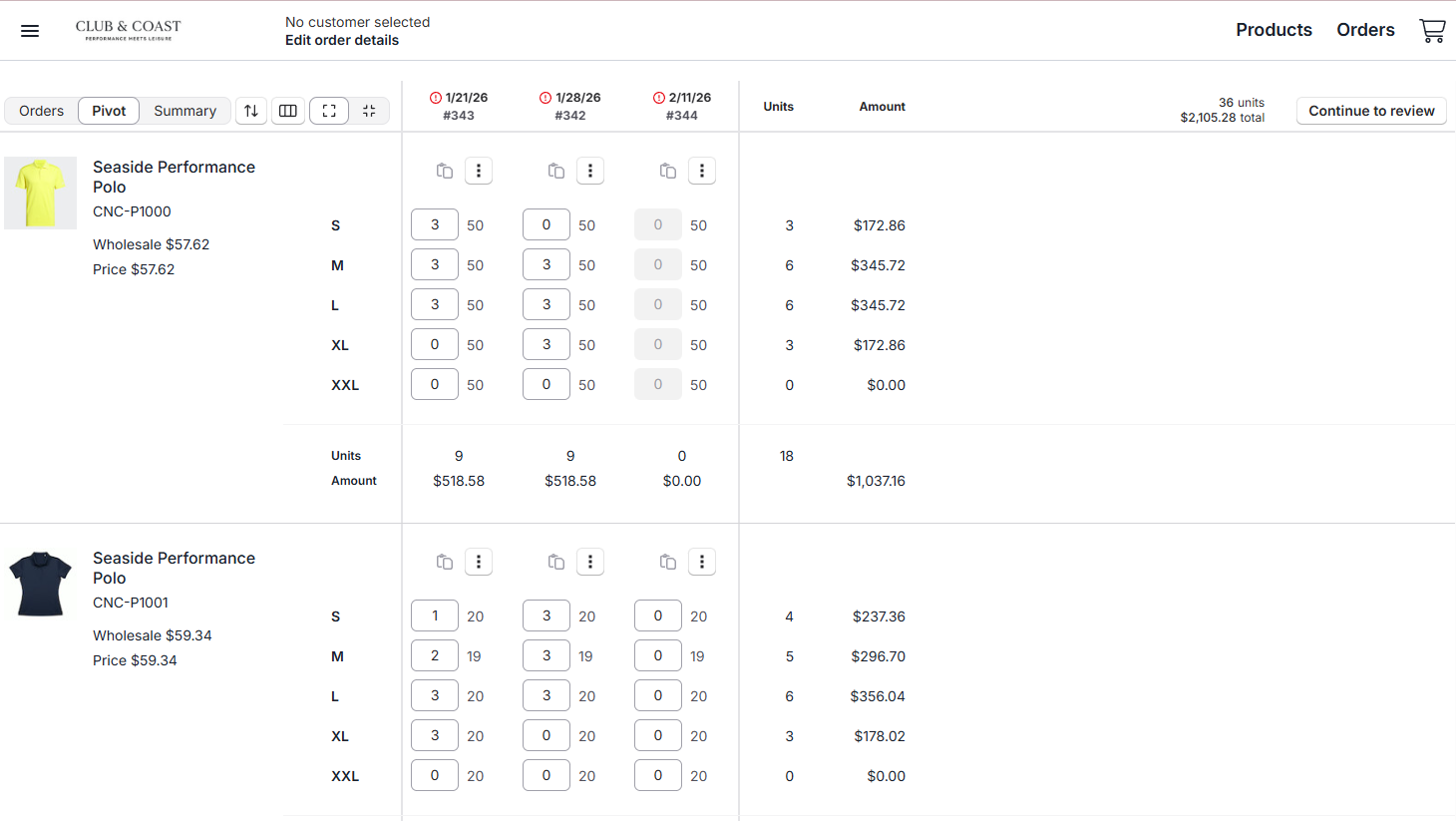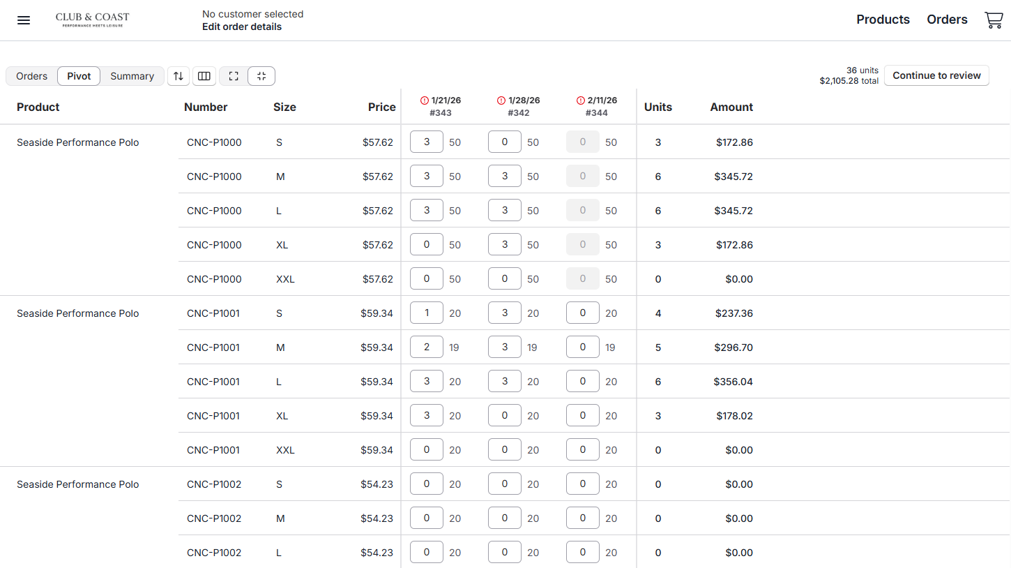 Quickly enter quantities across multiple orders