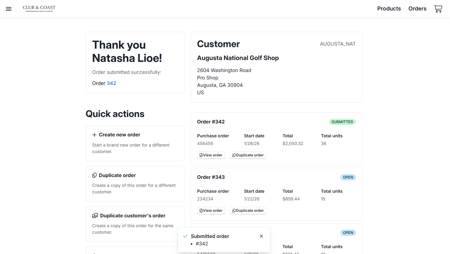 Duplicate order - Copy this order for a different customer
